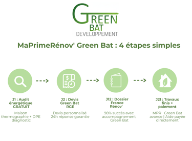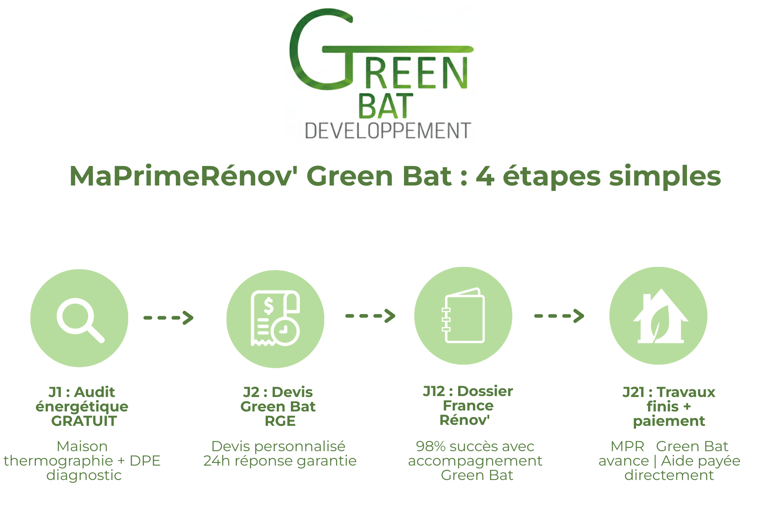 Audit énergétique OBLIGATOIRE (financé MPR). Green Bat offre DPE avant/après gratuit.