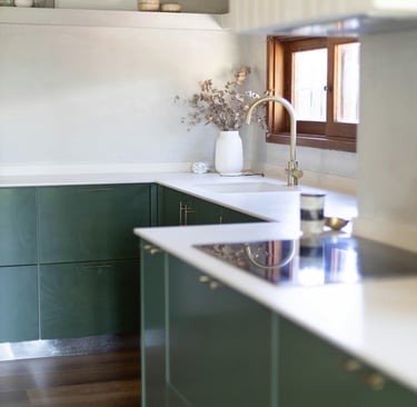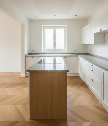 Le rez-de-chaussée de cette maison a été repensé pour offrir un espace de vie ouvert, lumineux et chaleureux. La cuisine fermée a cédé la place à une pièce à vivre contemporaine avec un îlot central en bois massif, des finitions soignées et un parquet en chêne chevron. L'ensemble a été pensé pour favoriser l’échange familial tout en intégrant des équipements modernes et économes en énergie.