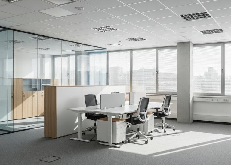 Ce projet a métamorphosé un plateau de bureaux vide en un open space fonctionnel et moderne, offrant un espace de travail ergonomique et agréable. L'installation de cloisons vitrées acoustiques, l'éclairage LED et la gestion discrète des câbles ont créé un environnement propice à la collaboration et à la productivité, respectant toutes les normes ERP.